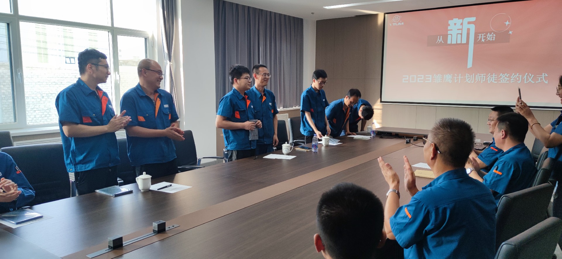 入職培訓后,新入職員工和導師們在公司領導和各單位技術部門負責人的見證下舉行了隆重的師徒結對簽約儀式,師帶徒模式是我公司優秀的傳統,今年首次拓展到技術人才隊伍的培養。徒弟敬一杯師傅茶,象征著滿滿的尊重與濃濃的感情。師傅送徒弟一個本子,希望徒弟們能夠用心書寫自己職業生涯的第一篇文章。