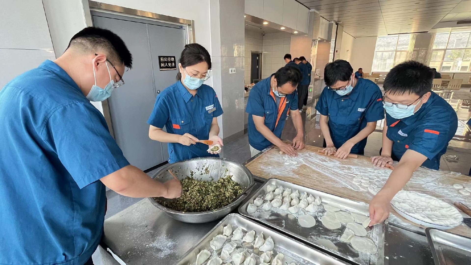 晚上,企業管理中心為導師及新員工們準備了豐盛的歡迎冷餐會,按照膠東的習俗,每逢大事吃團圓餃子,大家一起和面,一起拌餡,一起動手包水餃。師傅們紛紛對徒弟表示:“吃了水餃,咱們就是一家人了,好好干。”師傅徒弟和公司領導相對而坐,開懷暢飲,暢所欲言,自己包的餃子格外的香。