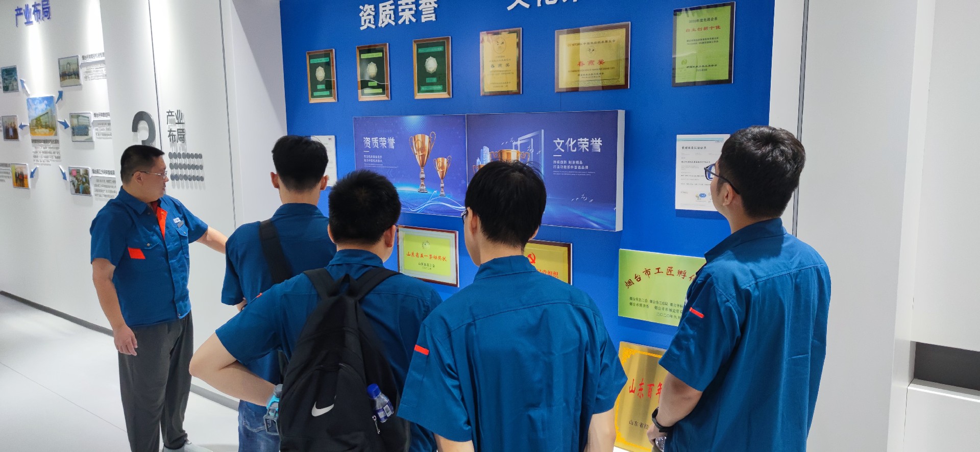 在入職培訓中,公司副總經理、總工程師景國豐向新入職技術員工詳細介紹了公司產品和技術發展情況,對技術崗位的職業發展前景進行了概括并對新員工提出了崗位要求與期待,勉勵大家能夠秉持“不登高山,不知天之高也;不臨深溪,不知地之厚也”的精神,成為一名深入一線,事必躬行的技術人才。企業管理中心副主任王德祥、人事專員崔巖輝分別為新員工們講解了公司的企業文化、人力資源制度及人才補貼政策,王主任帶領大家參觀了廠區及多媒體展廳,并向新員工詳細介紹了企業發展歷程及獲得的榮譽,大家對公司悠久的發展歷史感觸頗深,紛紛表示非常榮幸能剛畢業就應聘進入這樣一家有底蘊的公司,希望未來的自己也能登上公司的榮譽榜,在企業的發展中留下自己的光輝痕跡。